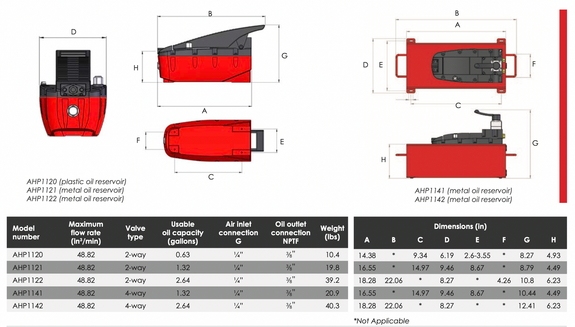 AHP11 - Air Driven Single Stage Hand and Foot Operated Pumps