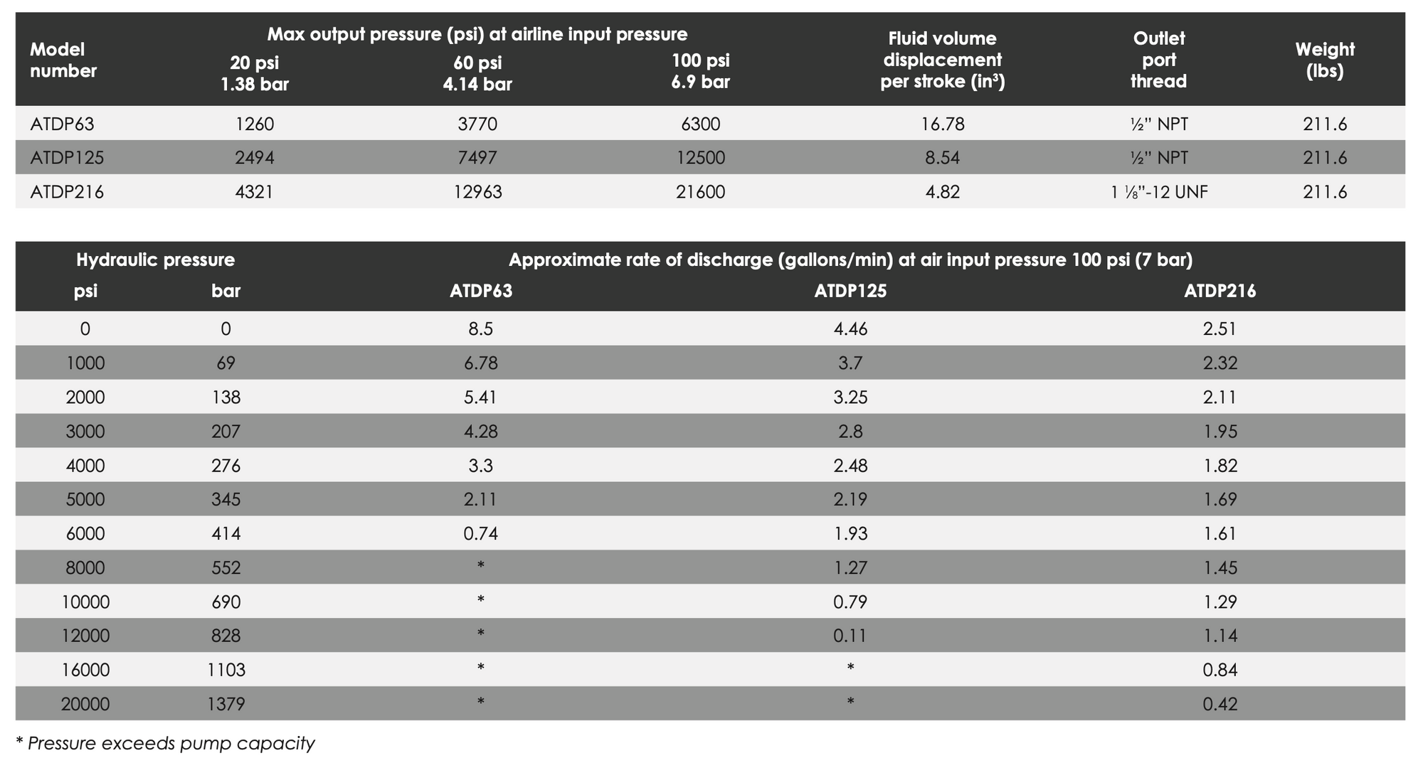 ATDP Air Driven Twin Double Acting Hydrotest Pumps