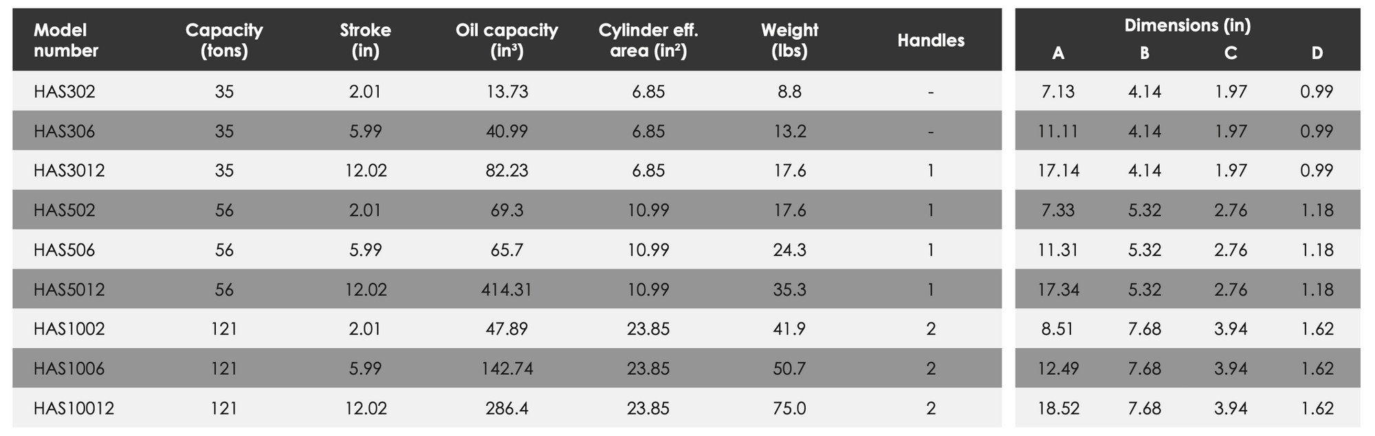 HAS - Single Acting Solid Piston Aluminum Cylinders