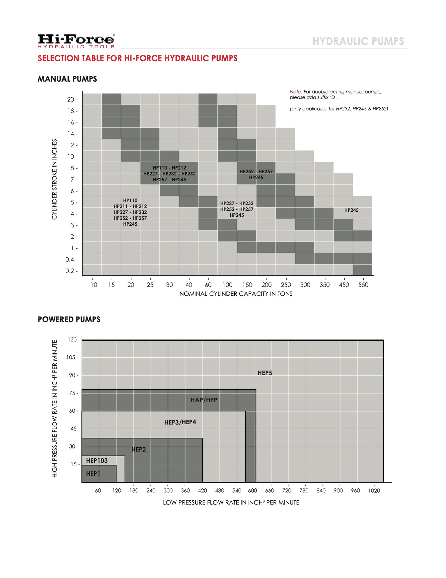 Hi-Force® Pumps by Stroke, Tonnage, and Flow Rate