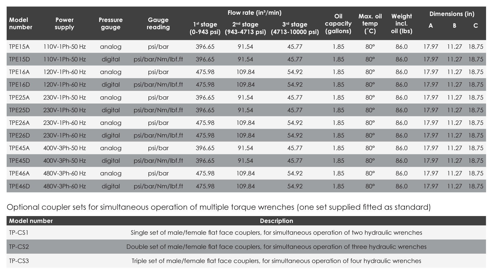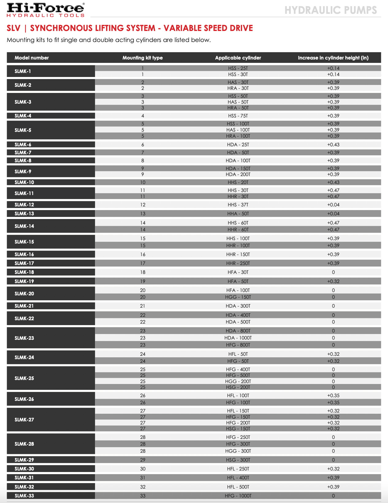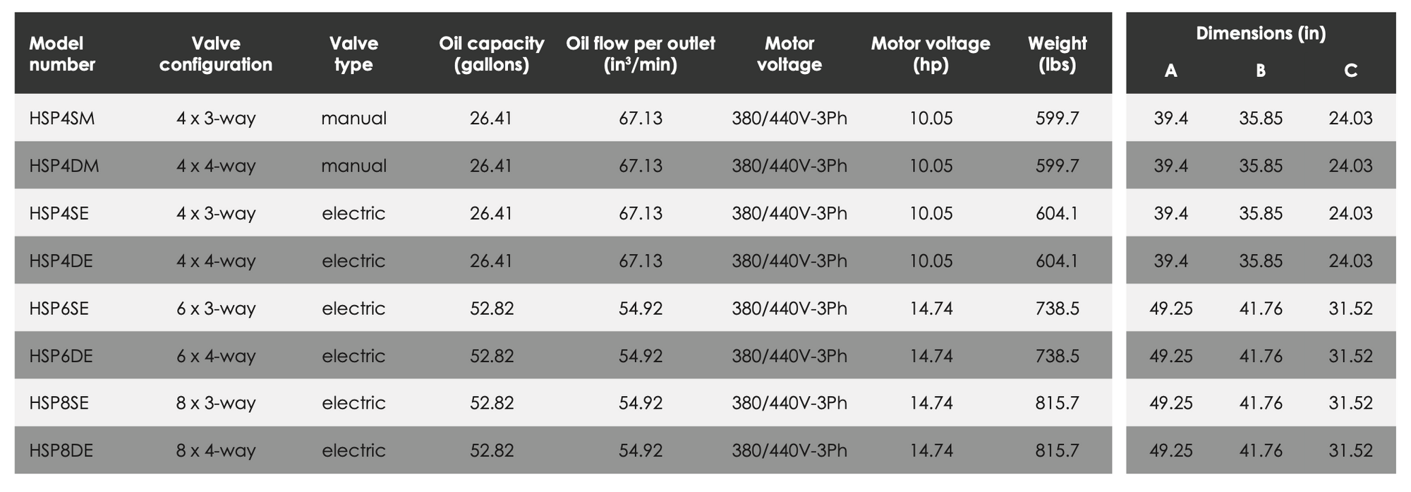 Manual, electric, air, gasoline-engine driven, split-flow electric pumps, synchronous lifting systems, and accessories, all with a wide range of customizations.