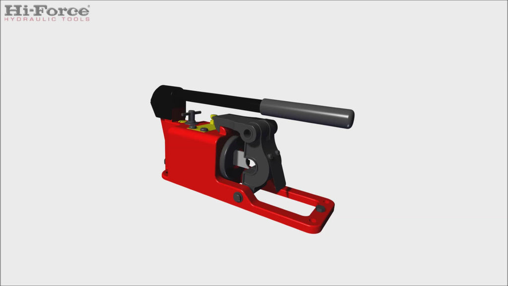 Self-contained design for applications where no external power is available. Open jaw design cutting head allows easy access for the material to be cut. Heat-treated, high-quality tool steel blade. Ergonomic grip handle for low operator effort. Smooth guillotine action reduces risk of blade jamming.